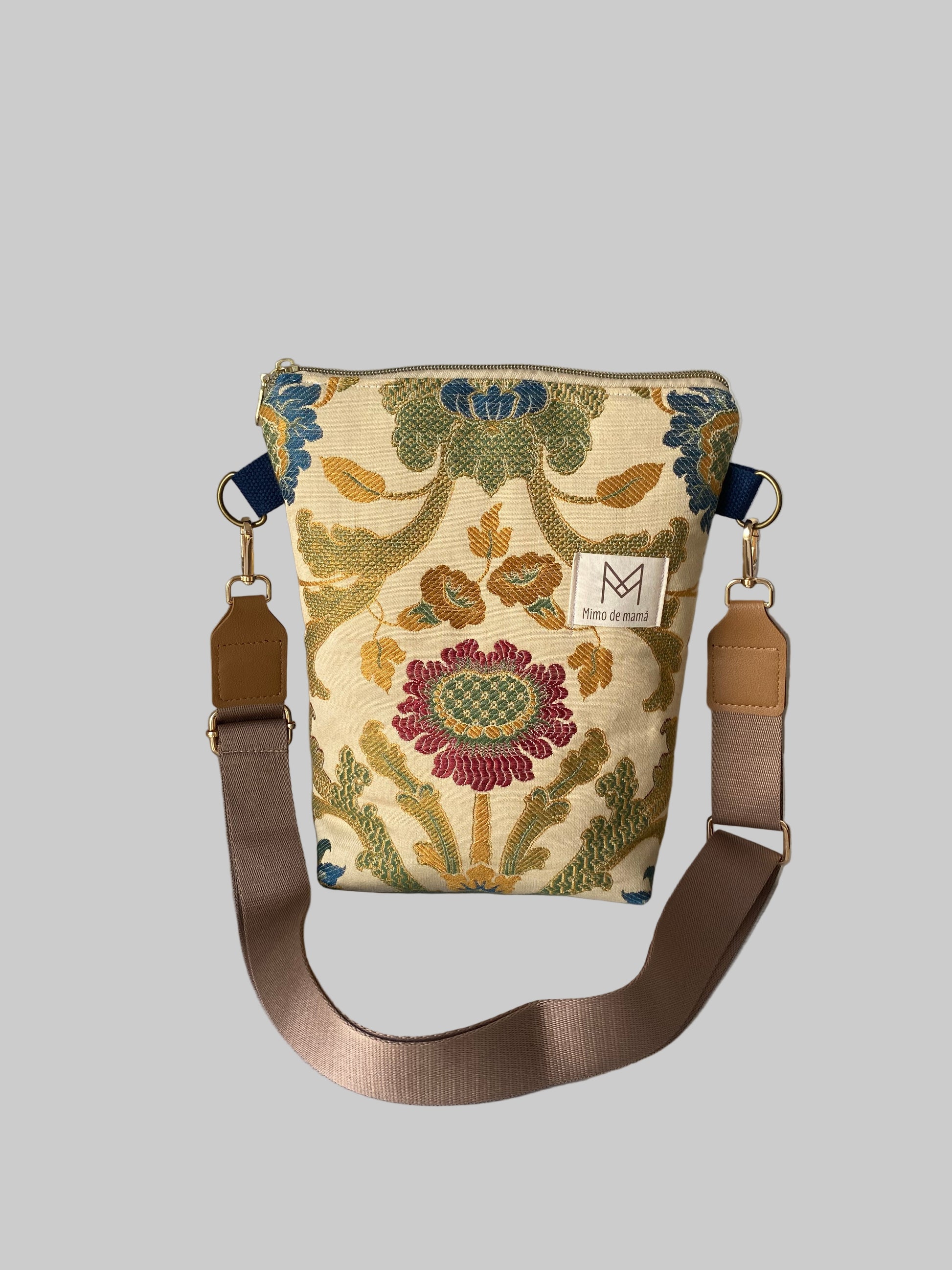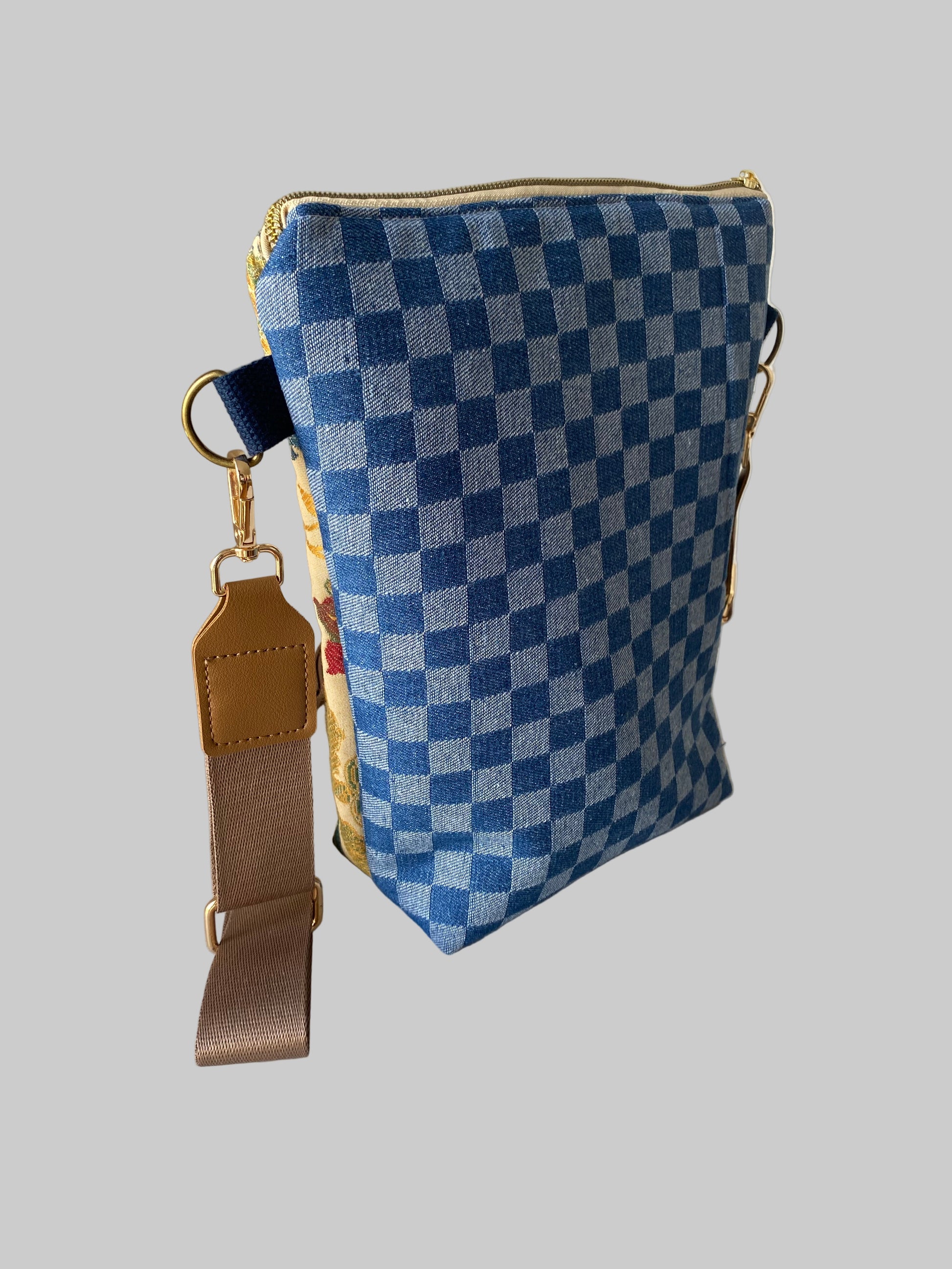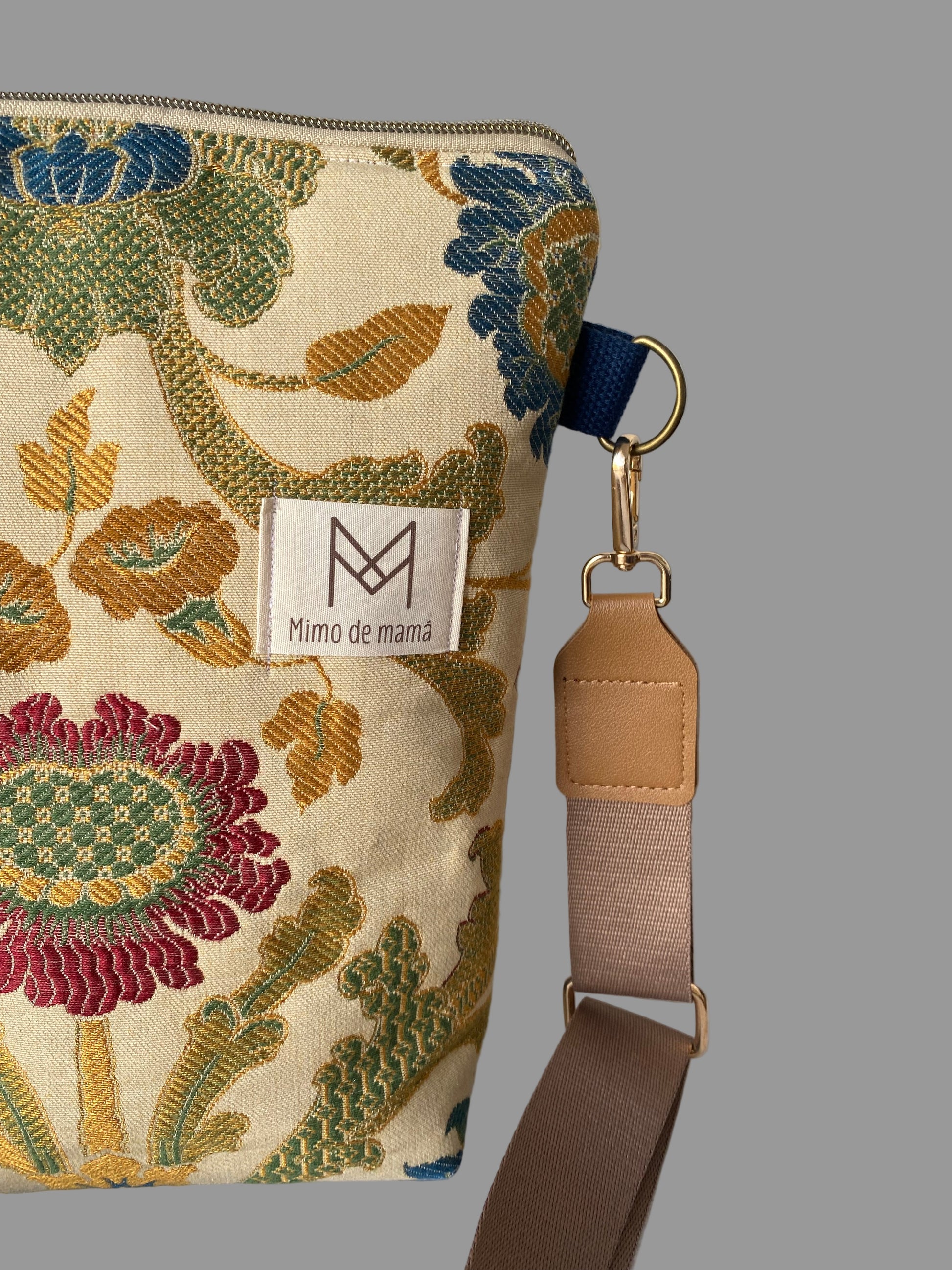 Me encanta la combinación de ambas telas, ,creo que le da un toque muy original y divertido a este bolso.