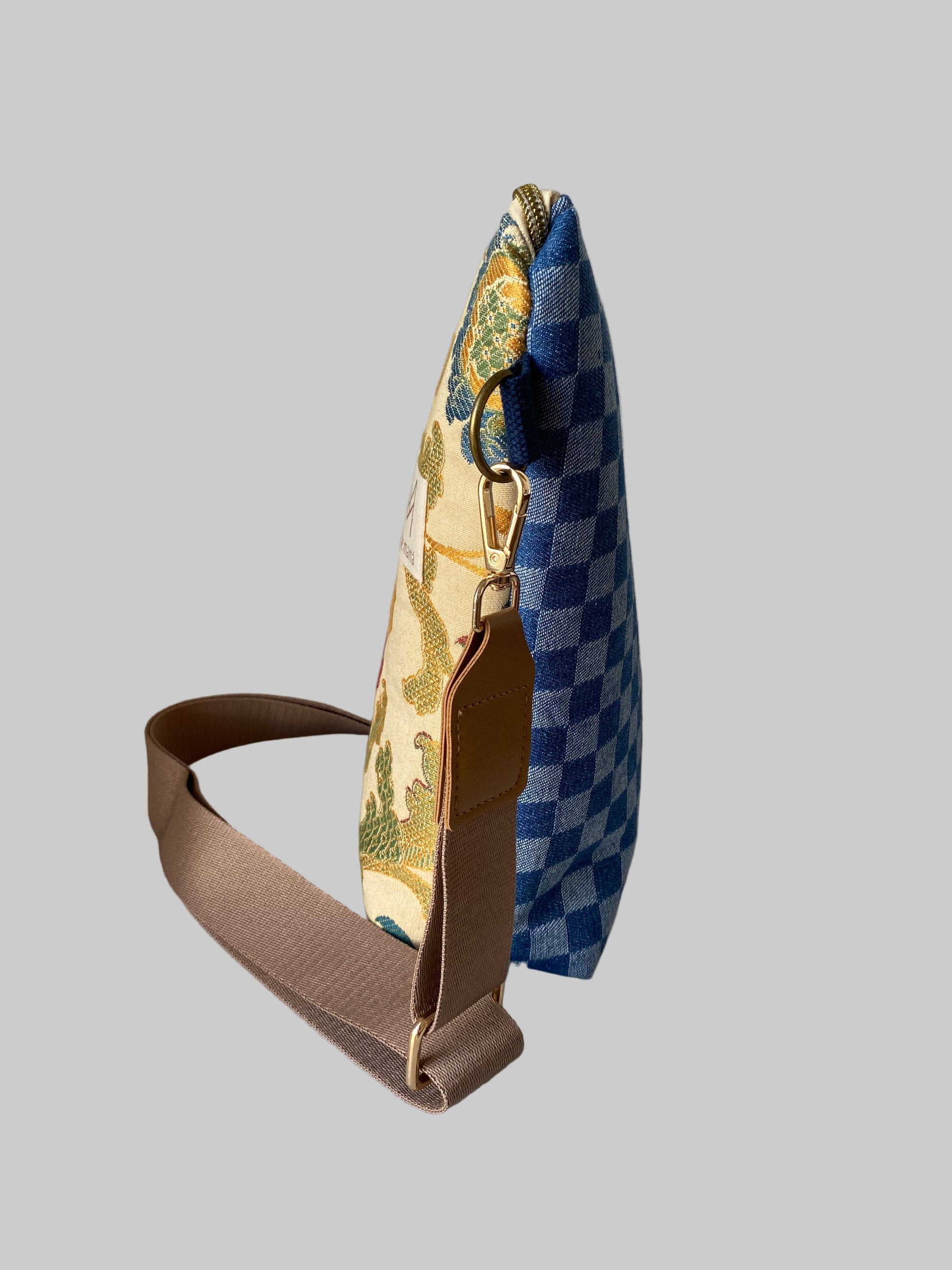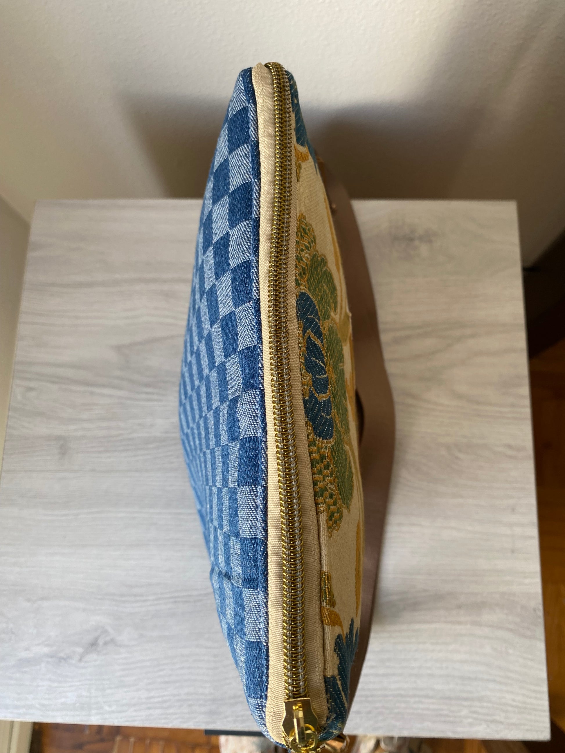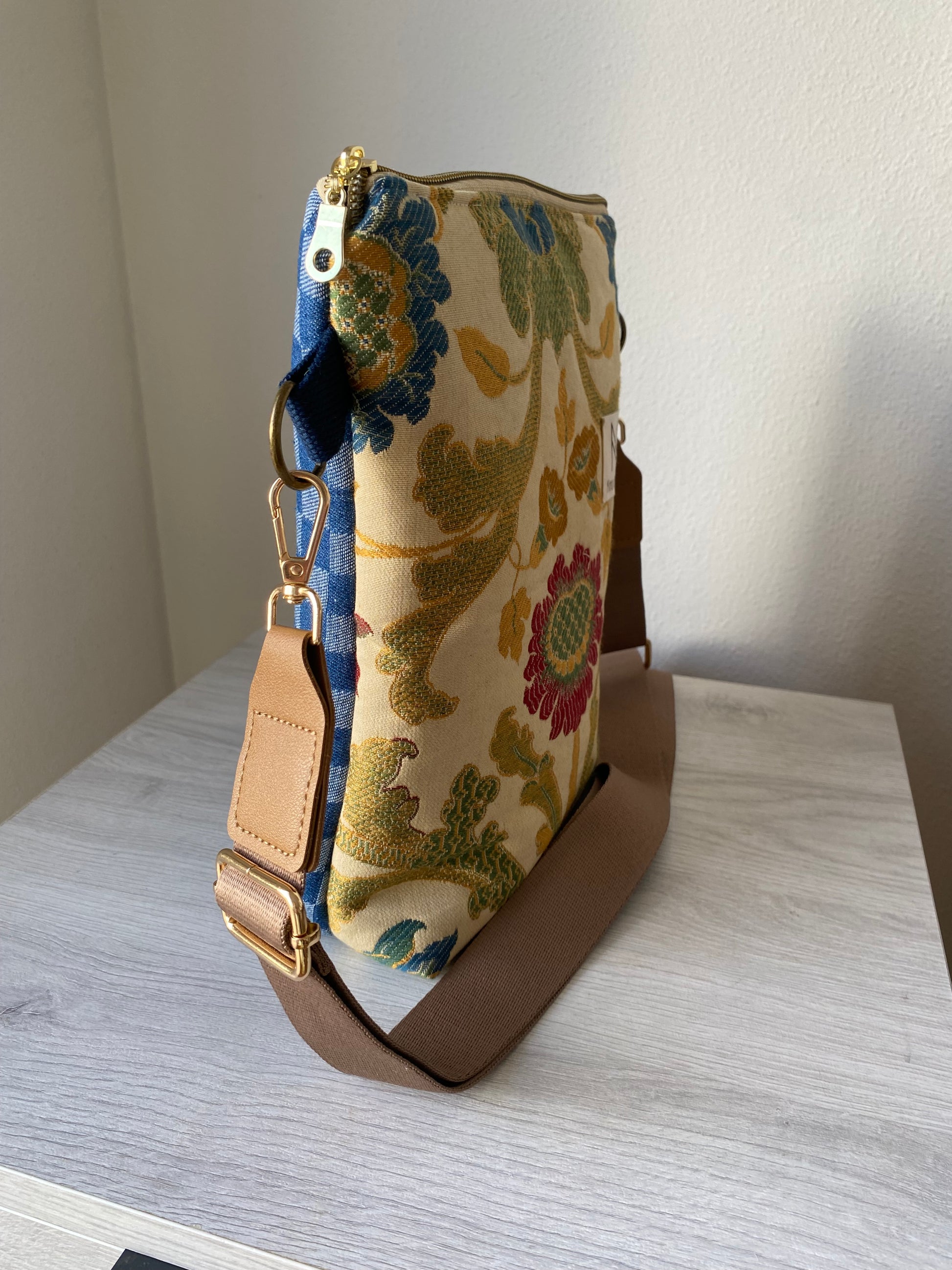 Me encanta la combinación de ambas telas, ,creo que le da un toque muy original y divertido a este bolso.