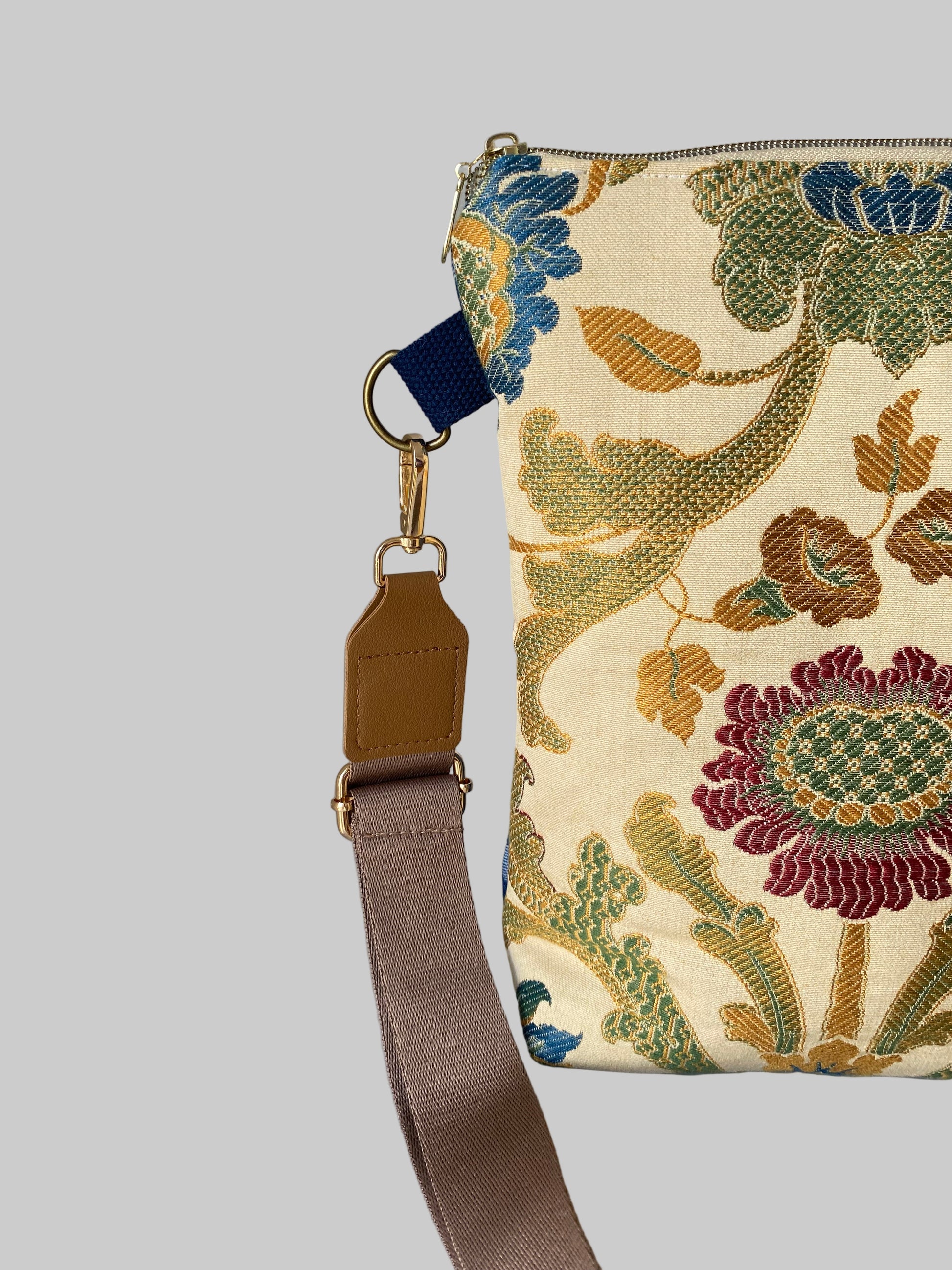 Esta es una pieza muy especial, porque gran parte de su material son telas y tejidos reciclados de tapicería.